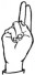 На ћирилици написано ХЕЛЕНА ОКОШАНОВИЋ састоји се из 16 слова [?]. Исписано ћириличном једноручном азбуком за глувонеме: